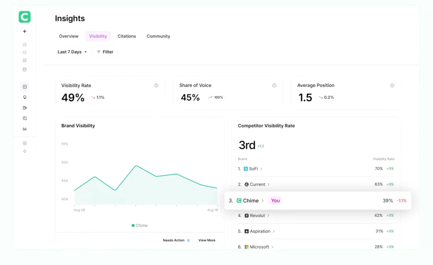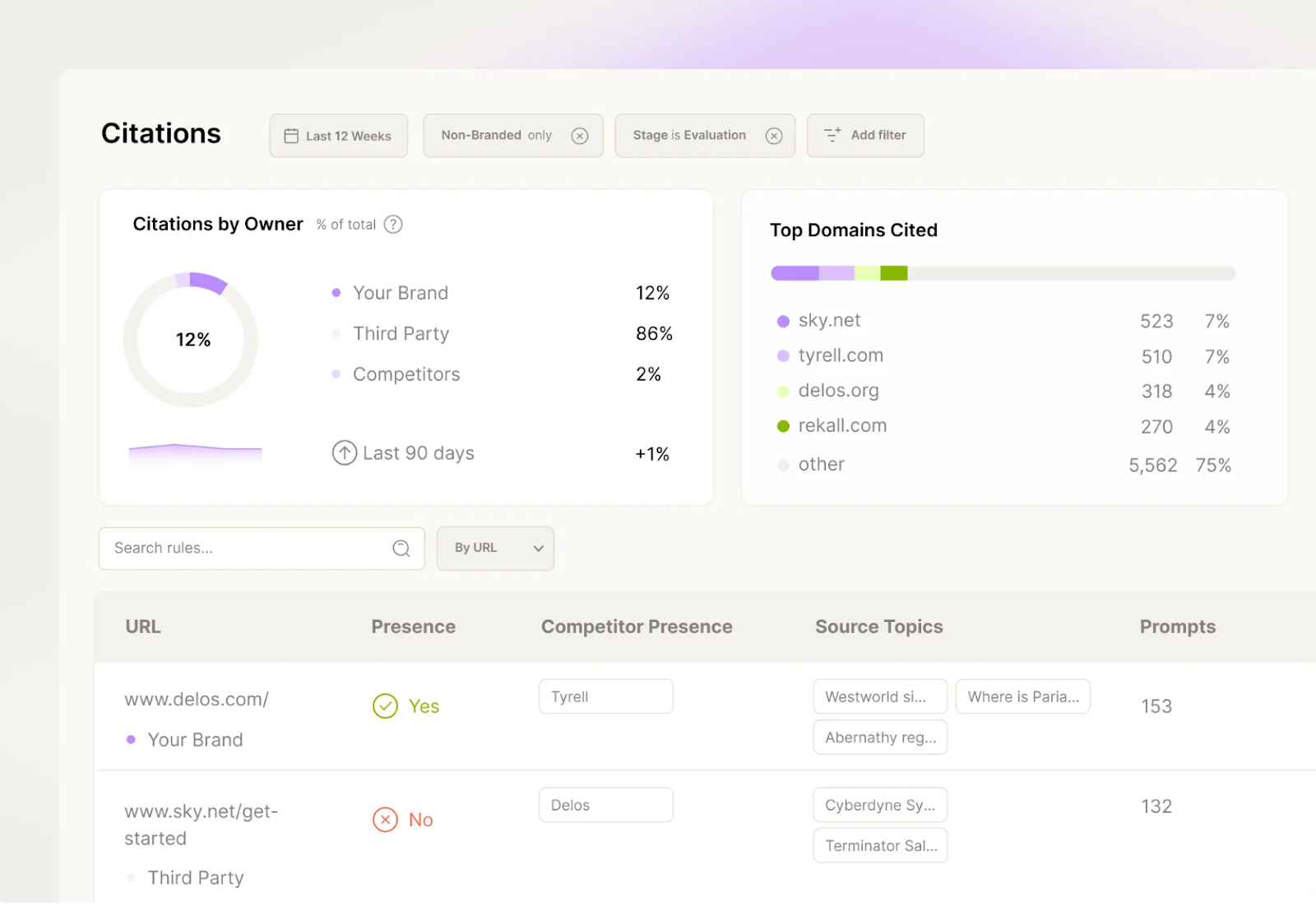 This includes identifying conversations your brand should be part of, articles where it would make sense to earn citations, and content topics that are likely to increase AI visibility.