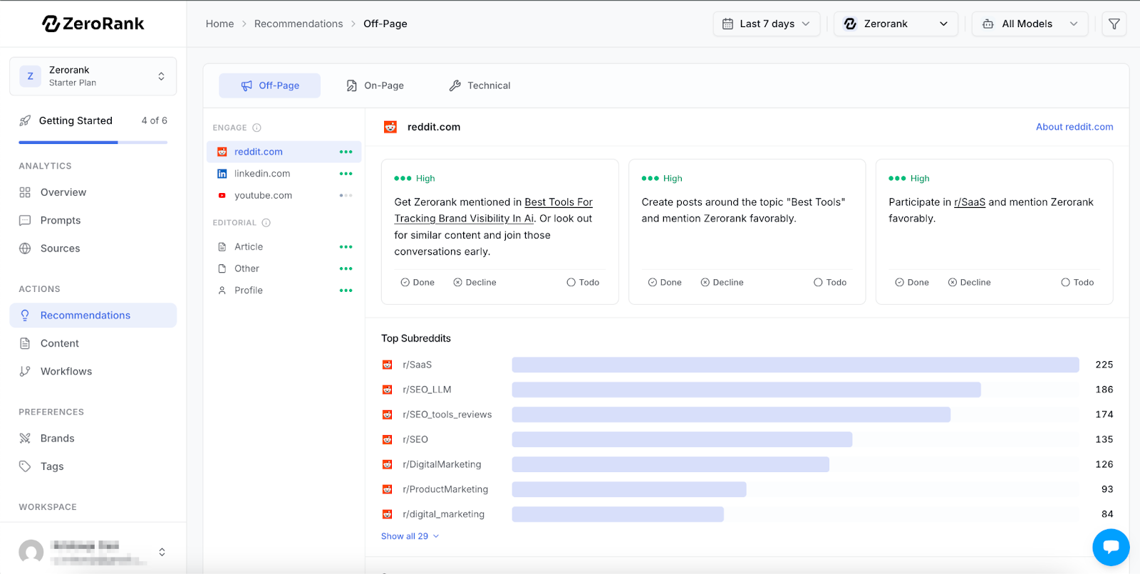 - Extra visibility layers: YouTube mentions and Reddit visibility insights